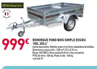 Remorque fond bois simple essieu hel 205.4