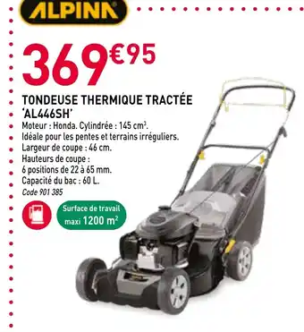 Actuellement, Tondeuse thermique tractée al446sh est en promotion chez RAGT Jardin & Maison. Toutes les informations utiles comme le prix, les conditions et la durée de validité sont affichées sur cette page. Consultez également les promotions similaires pour Tondeuse thermique tractée al446sh, afin de faire le meilleur choix. La promo Tondeuse thermique tractée al446sh est valable du 01-04-2026 au 18-04-2026. Si elle est expirée, regardez les autres offres équivalentes. Vous pouvez aussi suivre cette catégorie de produit pour être alerté lorsqu’une nouvelle promotion Tondeuse thermique tractée al446sh apparaît chez RAGT Jardin & Maison.Questions fréquemment posées au sujet de Tondeuse thermique tractée al446sh