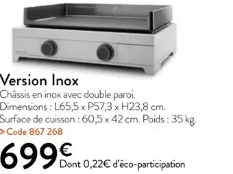 L'offre est disponible dans plusieurs magasins, vérifiez tous les produits pour obtenir le Version Inox le moins cher. Si vous souhaitez savoir si l'article est en vente avec une plus grosse remise dans un autre magasin, consultez la catégorie 'Jardineries et Animaleries'. Ces offres pourraient aussi vous intéresser : Version Inox, Version Acier & Version Acier.