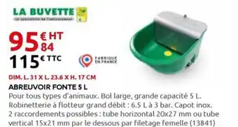 L'offre est disponible dans plusieurs magasins, vérifiez tous les produits pour obtenir le Abreuvoir fonte le moins cher. Si vous souhaitez savoir si l'article est en vente avec une plus grosse remise dans un autre magasin, consultez la catégorie 'Bricolage'. Ces offres pourraient aussi vous intéresser : Abreuvoir, Abreuvoir sur pieds 24 l & ABREUVOIR À VOLAILLES.