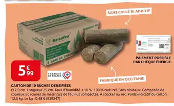 Offre Bricafeu carton de 10 bûches densifiées chez Rural Master