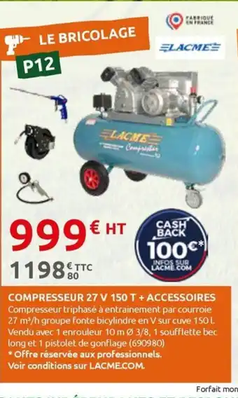 Offre Compresseur 27 v 150 t + accessoires chez Rural Master