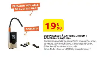 Compresseur à batterie lithium + powerbank 8 000 mah