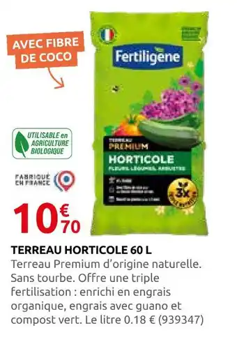 Offre Fertiligene terreau horticole 60 l chez Rural Master
