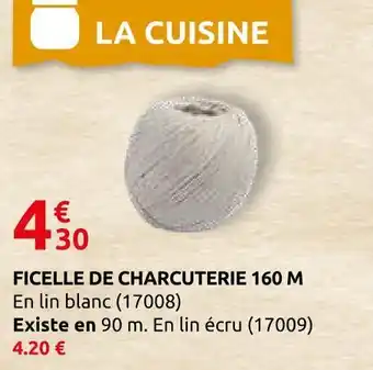 L'offre est disponible dans plusieurs magasins, vérifiez tous les produits pour obtenir le Ficelle de charcuterie le moins cher. Si vous souhaitez savoir si l'article est en vente avec une plus grosse remise dans un autre magasin, consultez la catégorie 'Bricolage'. Ces offres pourraient aussi vous intéresser : Ficelle de charcuterie, Ficelle picarde & Ficelle Picarde cuisinée.