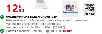 Hache manche bois hickory usa