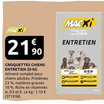 Actuellement en offre chez Rural Master : Macxi croquettes chiens entretien ✅ Valable du 1-04 au 25-04.