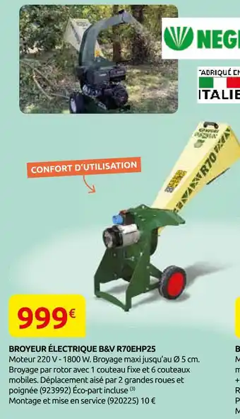Actuellement en offre chez Rural Master : Negri broyeur électrique b&v r70ehp25 ✅ Valable du 2-03 au 28-03.