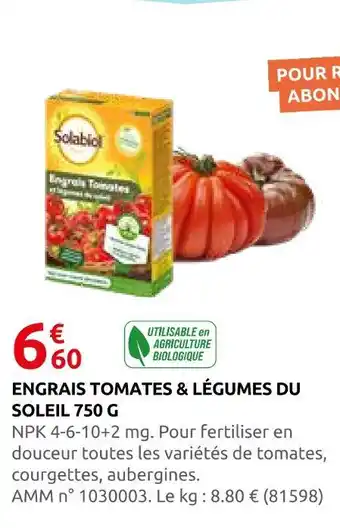 Actuellement en offre chez Rural Master : Solabiol engrais tomates & légumes du soleil ✅ Valable du 27-04 au 23-05.