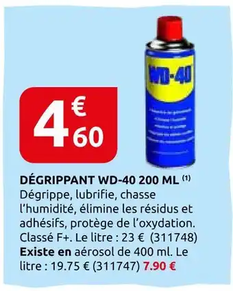 Actuellement en offre chez Rural Master : Wd-40 dégrippant wd-40 200 ml ✅ Valable du 1-04 au 25-04.