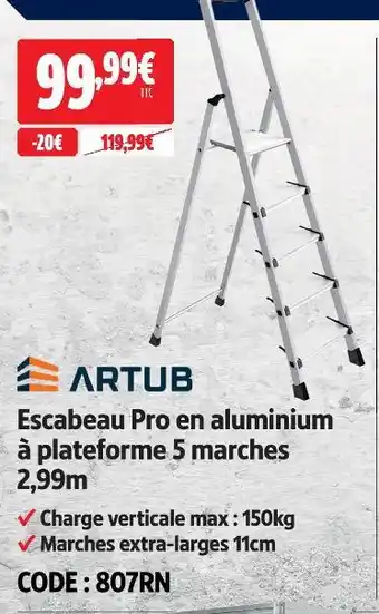 Artub escabeau pro en aluminium à plateforme 5 marches 2,99 m