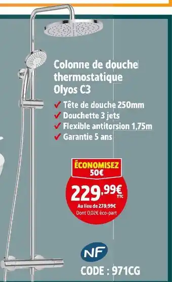 Actuellement en offre chez Screwfix : Colonne de douche thermostatique olyos c3 ✅ Valable du 7-01 au 3-02.