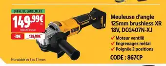 Actuellement en offre chez Screwfix : Dewalt meuleuse d'angle 125mm brushless xr 18v, dcg407n-xj ✅ Valable du 3-03 au 31-03.