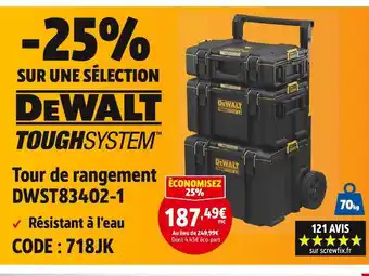 Actuellement en offre chez Screwfix : Dewalt toughsystem tour de rangement dwst83402-1 ✅ Valable du 7-01 au 3-02.