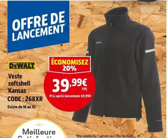 Actuellement en offre chez Screwfix : Dewalt veste softshell kansas ✅ Valable du 7-01 au 3-02.