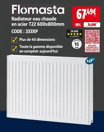 Actuellement en offre chez Screwfix : Flomasta radiateur eau chaude en acier t22 600x800mm ✅ Valable du 27-04 au 26-05.