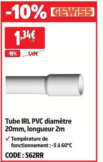Actuellement en offre chez Screwfix : Gewiss tube irl pvc diamètre 20mm, longueur 2m ✅ Valable du 1-04 au 26-04.