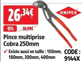 Actuellement en offre chez Screwfix : Knipex pince multiprise cobra 250mm ✅ Valable du 3-03 au 31-03.