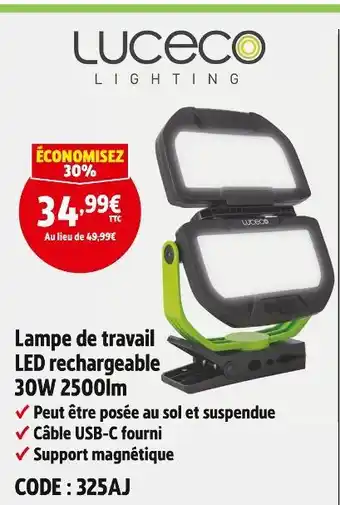 Actuellement en offre chez Screwfix : Luceco lampe de travail led rechargeable 30w 2500lm ✅ Valable du 7-01 au 3-02.