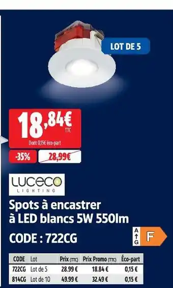 Actuellement en offre chez Screwfix : Luceco lighting spots à encastrer à led blancs 5w 550lm ✅ Valable du 3-03 au 31-03.
