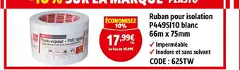 Actuellement en offre chez Screwfix : Plasto ruban pour isolation p449si10 blanc ✅ Valable du 3-12 au 6-01.