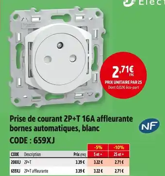 Actuellement, Prise de courant 2p+t 16a affleurante bornes automatiques, blanc est en promotion chez Screwfix. Toutes les informations utiles comme le prix, les conditions et la durée de validité sont affichées sur cette page. Consultez également les promotions similaires pour Prise de courant 2p+t 16a affleurante bornes automatiques, blanc, afin de faire le meilleur choix. La promo Prise de courant 2p+t 16a affleurante bornes automatiques, blanc est valable du 07-01-2026 au 03-02-2026. Si elle est expirée, regardez les autres offres équivalentes. Vous pouvez aussi suivre cette catégorie de produit pour être alerté lorsqu’une nouvelle promotion Prise de courant 2p+t 16a affleurante bornes automatiques, blanc apparaît chez Screwfix.Questions fréquemment posées au sujet de Prise de courant 2p+t 16a affleurante bornes automatiques, blanc