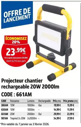 Une promotion Projecteur chantier rechargeable 20w 2000lm prévue la semaine prochaine ?