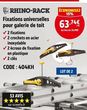 Rhino-rack fixations universelles pour galerie de toit : offres et promos Screwfix à découvrir