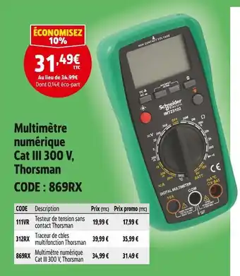 Schneider multimètre numérique cat iii 300 v, thorsman offres et promotions en ligne chez Screwfix