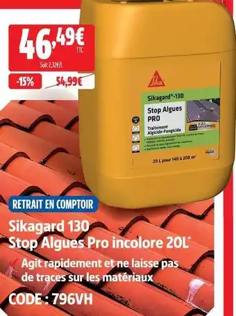 Actuellement en offre chez Screwfix : Sikagard 130 stop algues pro incolore 20 l ✅ Valable du 1-04 au 26-04.