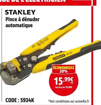 Actuellement en offre chez Screwfix : Stanley pince à dénuder automatique ✅ Valable du 7-01 au 3-02.