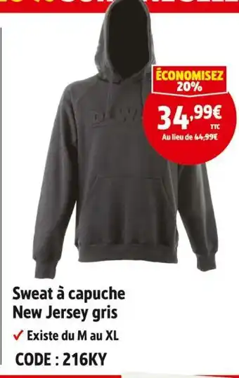 Actuellement en offre chez Screwfix : Sweat à capuche new jersey gris ✅ Valable du 3-12 au 6-01.