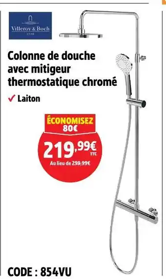 Actuellement en offre chez Screwfix : Villeroy & boch colonne de douche avec mitigeur thermostatique chromé ✅ Valable du 4-02 au 2-03.