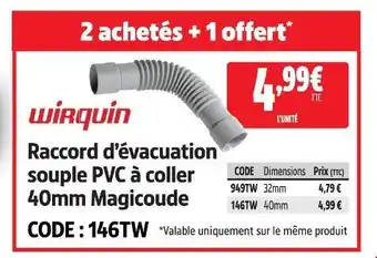 Actuellement en offre chez Screwfix : Wirquin raccord d'évacuation souple pvc à coller 40mm magicoude ✅ Valable du 1-04 au 26-04.