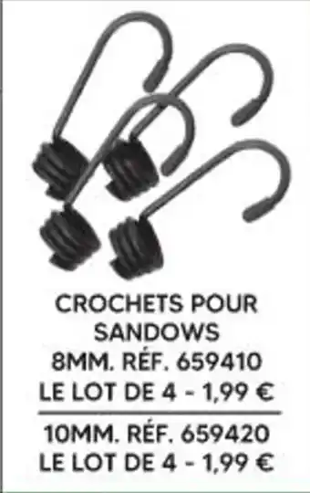 L'offre est disponible dans plusieurs magasins, vérifiez tous les produits pour obtenir le CROCHETS POUR SANDOWS le moins cher. Si vous souhaitez savoir si l'article est en vente avec une plus grosse remise dans un autre magasin, consultez la catégorie 'Bricolage'. Ces offres pourraient aussi vous intéresser : 2 sandows, SANDOWS & CROCHETS SUPPLÉMENTAIRES.