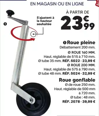 L'offre est disponible dans plusieurs magasins, vérifiez tous les produits pour obtenir le Roue pleine le moins cher. Si vous souhaitez savoir si l'article est en vente avec une plus grosse remise dans un autre magasin, consultez la catégorie 'Bricolage'. Ces offres pourraient aussi vous intéresser : Renault - roulement de roue, La roue axe centrale & Corbeille pleine campagne.