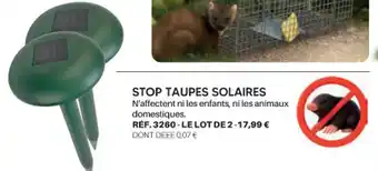 Découvrez les produits les moins chers parmi toutes les offres ! Si vous voulez savoir si Shopix propose la meilleure remise pour STOP TAUPES SOLAIRES, comparez-la sur la page thèmes ou avec d'autres magasins.