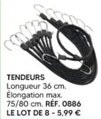 L'offre est disponible dans plusieurs magasins, vérifiez tous les produits pour obtenir le TENDEURS le moins cher. Si vous souhaitez savoir si l'article est en vente avec une plus grosse remise dans un autre magasin, consultez la catégorie 'Bricolage'. Ces offres pourraient aussi vous intéresser : Tendeurs avec crochets, Tendeurs avec crochets & Tendeurs avec mousquetons en aluminium anodisé.