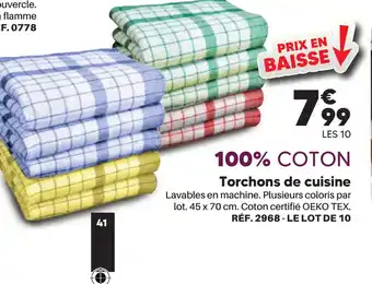 L'offre est disponible dans plusieurs magasins, vérifiez tous les produits pour obtenir le Torchons de cuisine le moins cher. Si vous souhaitez savoir si l'article est en vente avec une plus grosse remise dans un autre magasin, consultez la catégorie 'Bricolage'. Ces offres pourraient aussi vous intéresser : Lot de 4 torchons, Le lot de 3 torchons & Lot de 2 torchons.