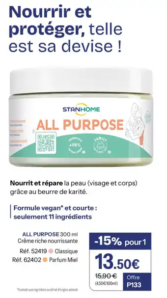 All purpose crême riche nourrissante : offres et promos Stanhome à découvrir