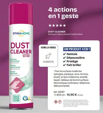En plus de l'offre Dust cleaner, Stanhome propose une large gamme de produits. Consultez le Catalogue Stanhome hebdomadaire pour découvrir les meilleures offres et promotions. En plus de Dust cleaner, il y a aussi : Dust cleaner + dust cloth, Hand cleaner & Dust cloth.