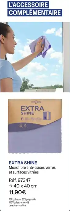 En plus de l'offre Extra shine, Stanhome propose une large gamme de produits. Consultez le Catalogue Stanhome hebdomadaire pour découvrir les meilleures offres et promotions. En plus de Extra shine, il y a aussi : Shine booster, Sparkle & shine lingettes tout usage parfum citron & Sparkle & shine lingettes tout usage parfum eucalyptus.