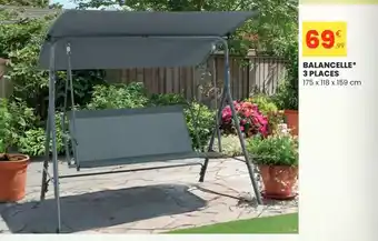 L'offre est disponible dans plusieurs magasins, vérifiez tous les produits pour obtenir le Balancille 3 places le moins cher. Si vous souhaitez savoir si l'article est en vente avec une plus grosse remise dans un autre magasin, consultez la catégorie 'Bazar et Déstockage'. Ces offres pourraient aussi vous intéresser : Balancelle* 3 places, Canapé de relaxation électrique 3 places Sereno & Canapé de relaxation électrique 3 places Victor.