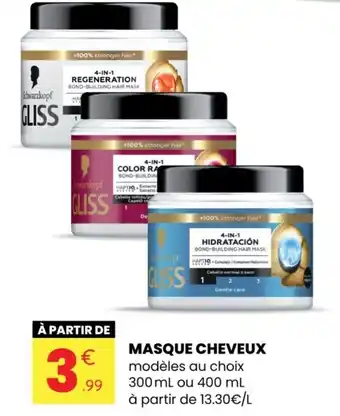 Actuellement, Masque cheveux est en promotion chez Stokomani. Toutes les informations utiles comme le prix, les conditions et la durée de validité sont affichées sur cette page. Consultez également les promotions similaires pour Masque cheveux, afin de faire le meilleur choix. La promo Masque cheveux est valable du 25-02-2026 au 08-03-2026. Si elle est expirée, regardez les autres offres équivalentes. Vous pouvez aussi suivre cette catégorie de produit pour être alerté lorsqu’une nouvelle promotion Masque cheveux apparaît chez Stokomani.Questions fréquemment posées au sujet de Masque cheveux