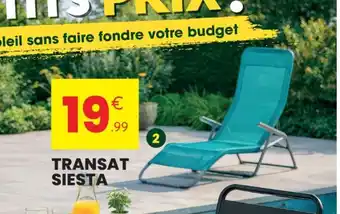 En plus de l'offre Transat siesta, Stokomani propose une large gamme de produits. Consultez le Catalogue Stokomani hebdomadaire pour découvrir les meilleures offres et promotions. En plus de Transat siesta, il y a aussi : Transat transaswing, Transat transaswing & Maxi transat batyline.
