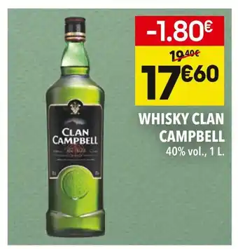 En plus de l'offre Clan campbell whisky, Supeco propose une large gamme de produits. Consultez le Catalogue Supeco hebdomadaire pour découvrir les meilleures offres et promotions. En plus de Clan campbell whisky, il y a aussi : CLAN CAMPBELL Whisky, CLAN CAMPBELL Whisky & CLAN CAMPBELL Whisky blended scotch.
