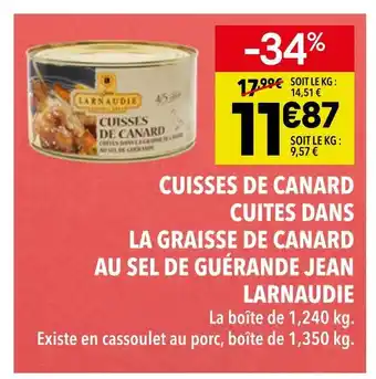 Actuellement en offre chez Supeco : Jean larnaudie cuisses de canard cuites dans la graisse de canard au sel de guérande ✅ Valable du 9-12 au 21-12.