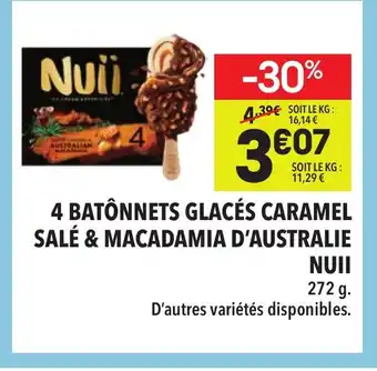 Offre NUII 4 batônnets glacés caramel salé & macadamia d'australie chez Supeco