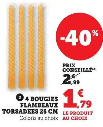 4 bougies flambeaux torsadées 25 cm : offres et promos Super U à découvrir