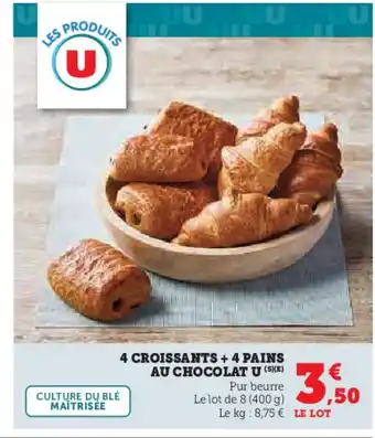Offre 4 croissants + 4 pains au chocolat u chez Super U